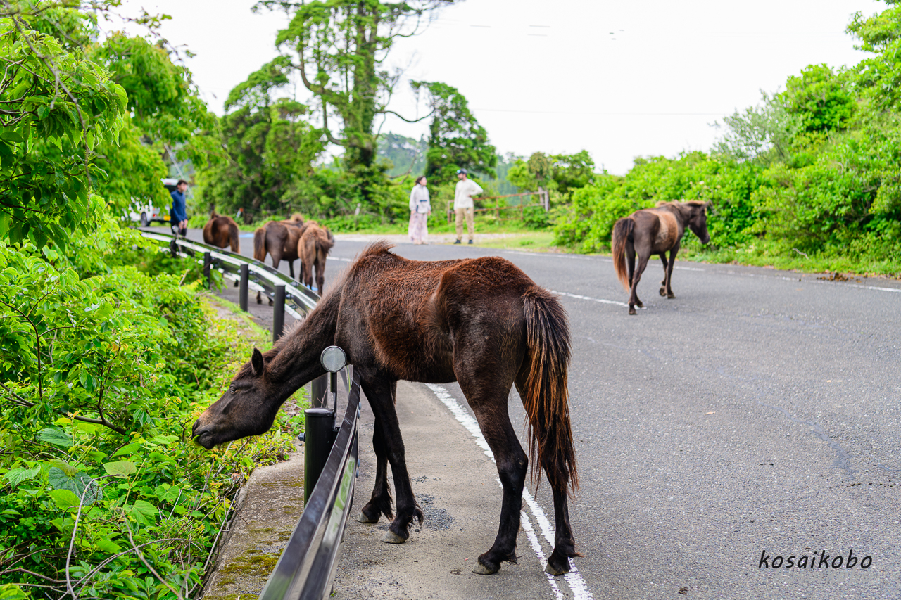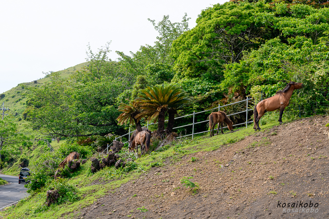 昔は、宮崎市からハイヤーを依頼し交通機関の不便な都井岬まで行きました。今回都井岬で野生馬の姿を撮影してると、欧米の旅行者方が野生馬の集まっているところを探しながら回っています。そのスタイルが移動に大型のキャンピングカーを利用し、通訳兼のコーディネーターと思われる方が先導しています。海外からの方の旅行スタイルも変化しているようです。