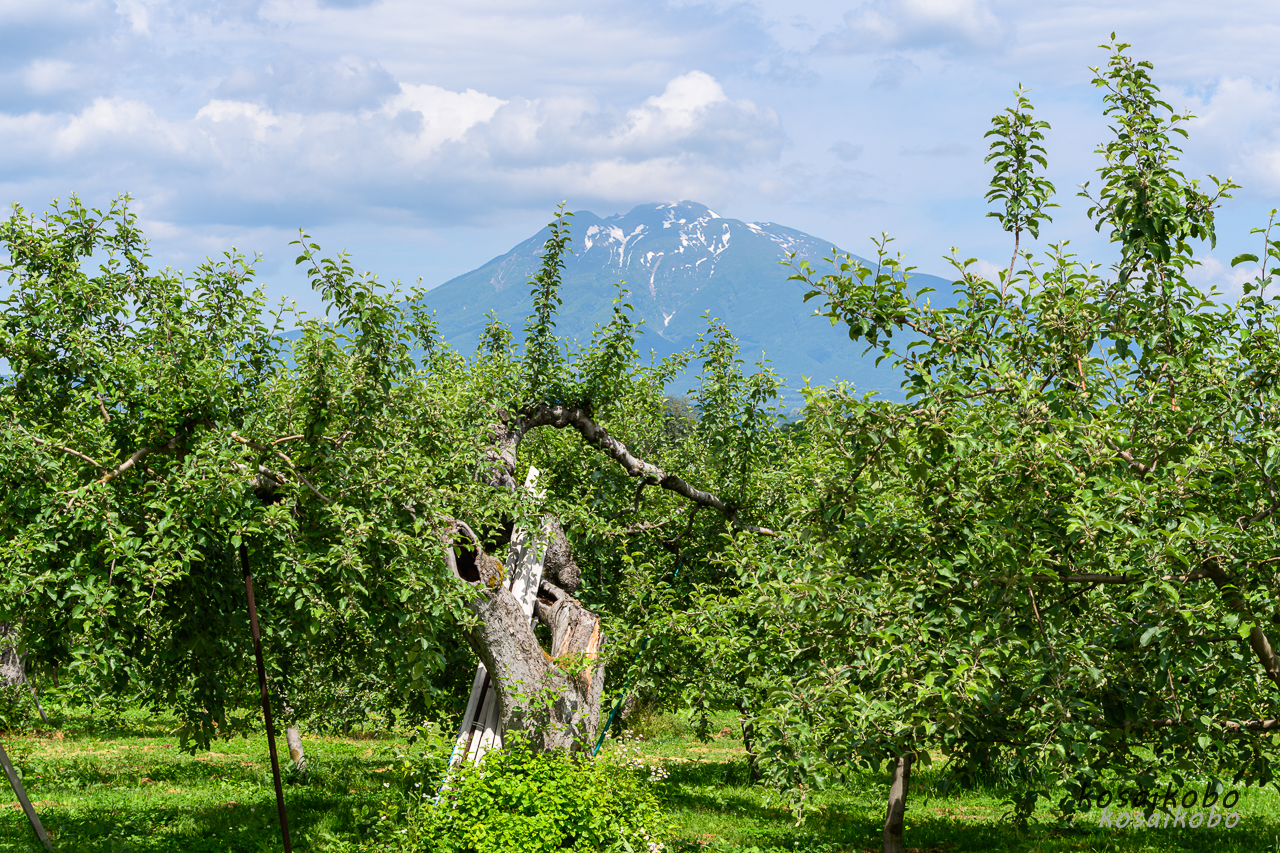 - リンゴ畑と岩木山