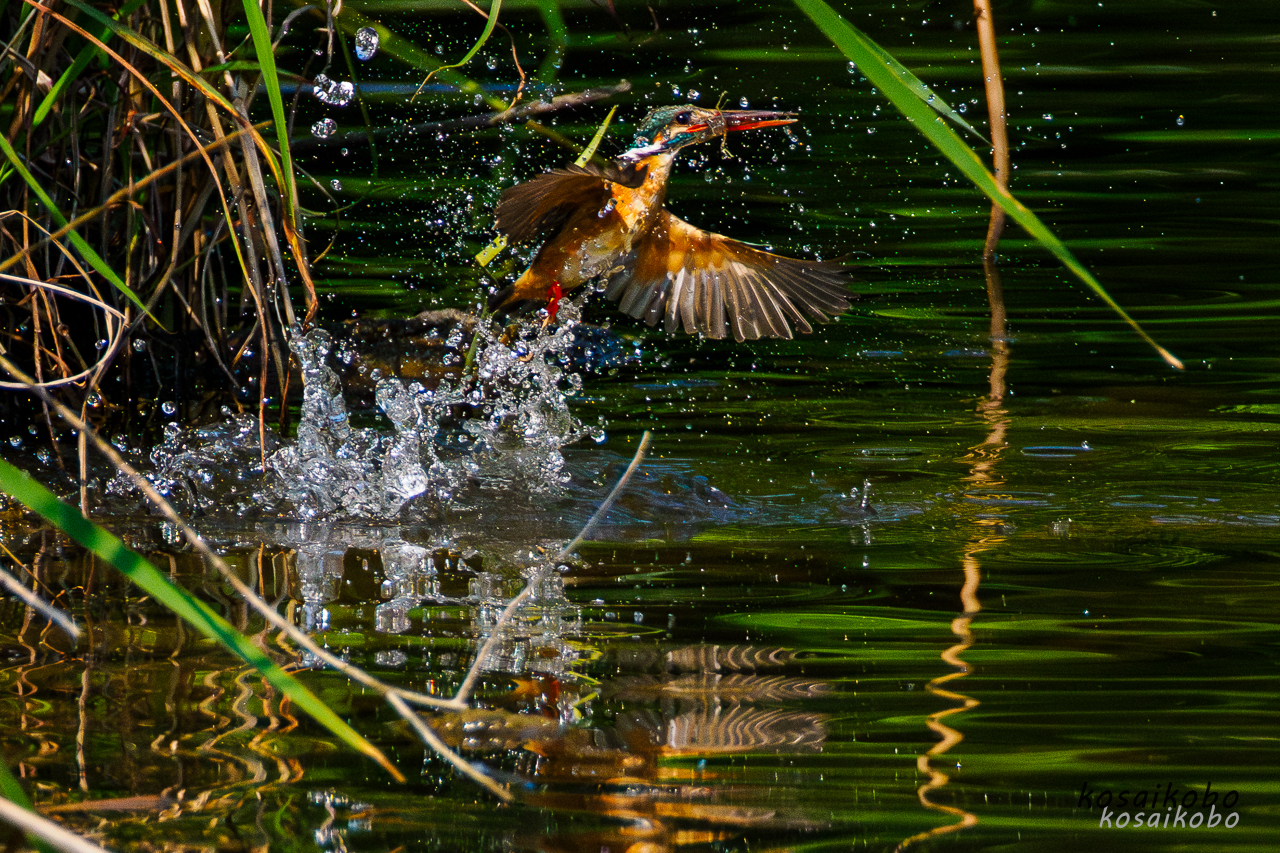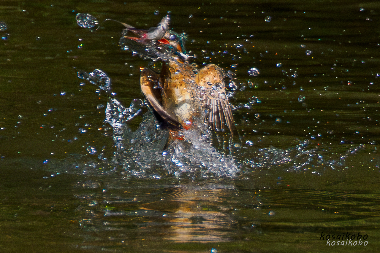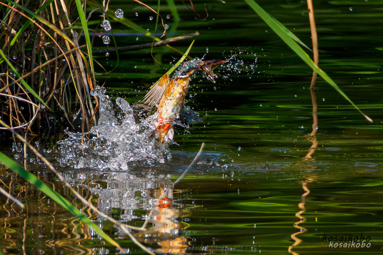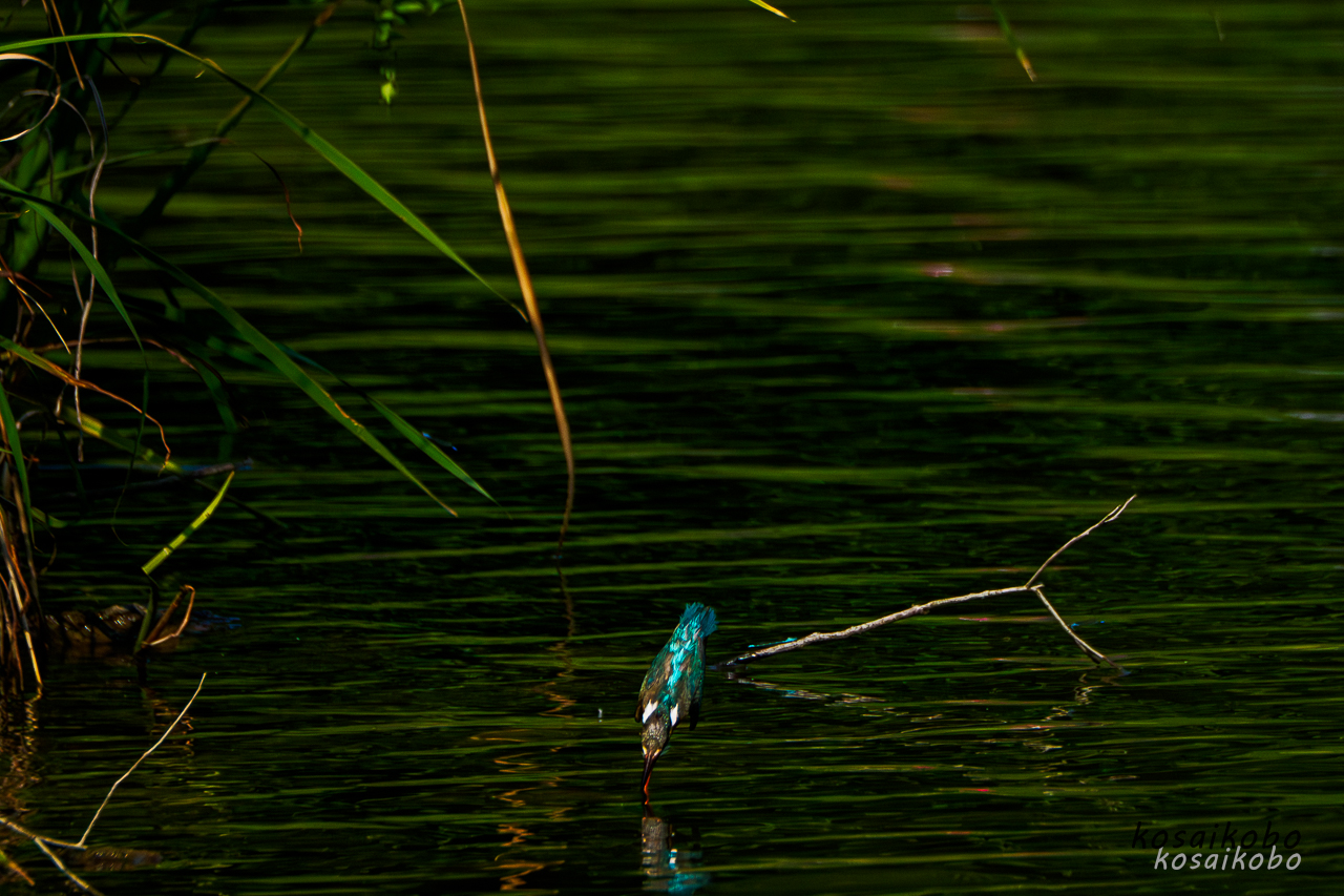 これまでカワセミが水中へ飛び込んで小魚などを捕獲するシーンを撮影した事が無かったので撮影にチャレンジした写真です。